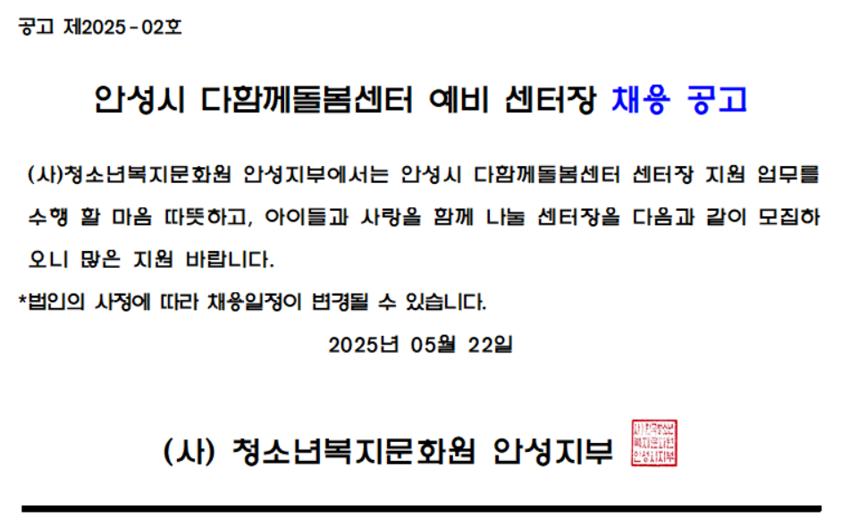 *자세한 사항은 첨부파일을 확인하시고 법인의 사정에 따라 채용일정은 변경될 수 있습니다.